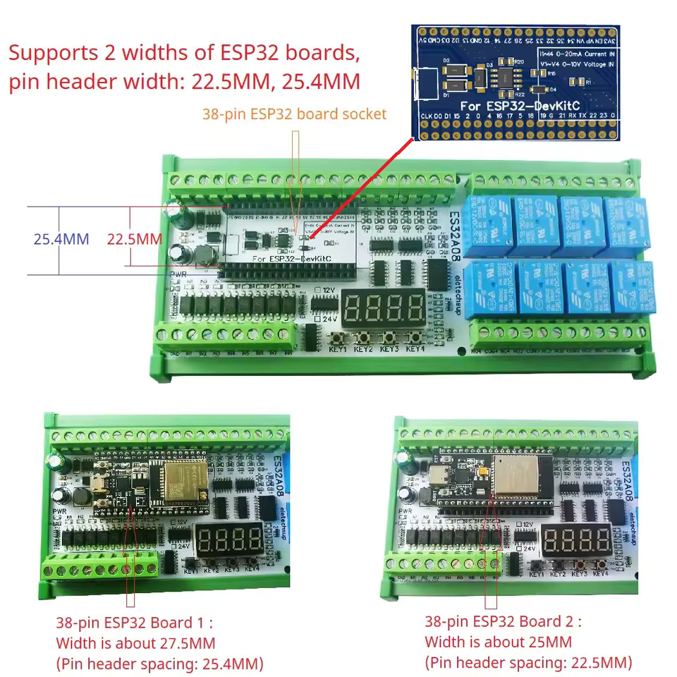 Placa de expansión 8AI-8DI-8DO 24V DC 12V ESP-WROOM-32 ESP32 RS485 4-20MA 0-5V 0-10V, interruptor de relé Wifi de colección analógica PLC
